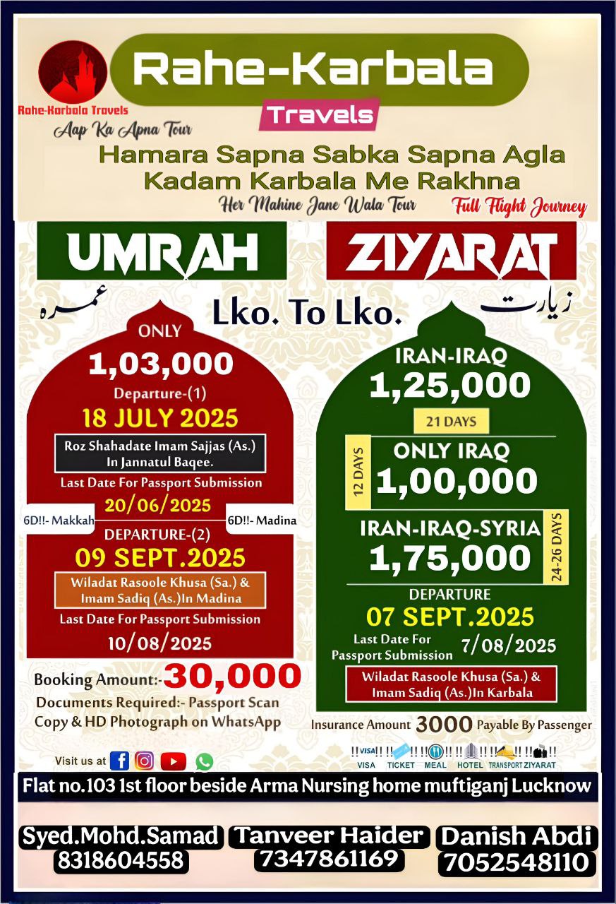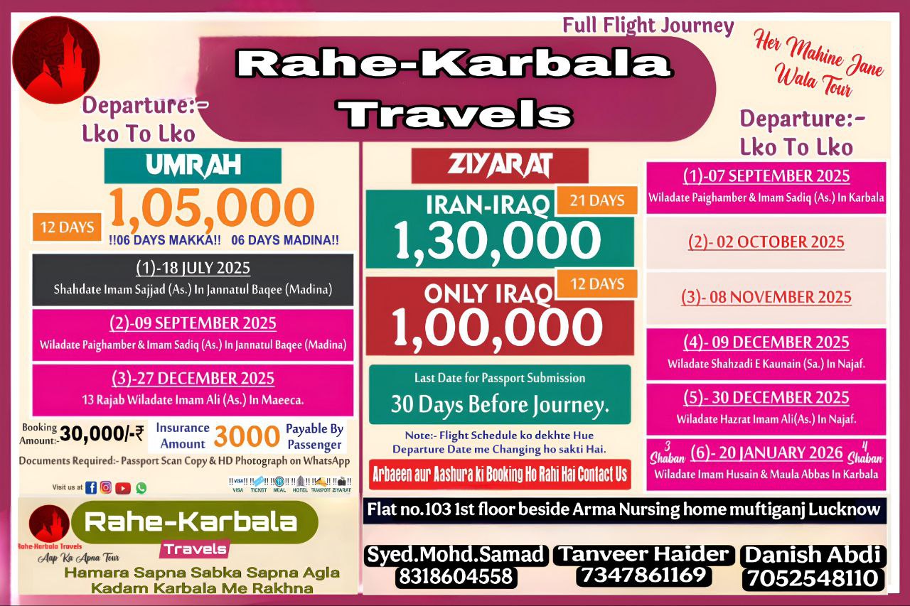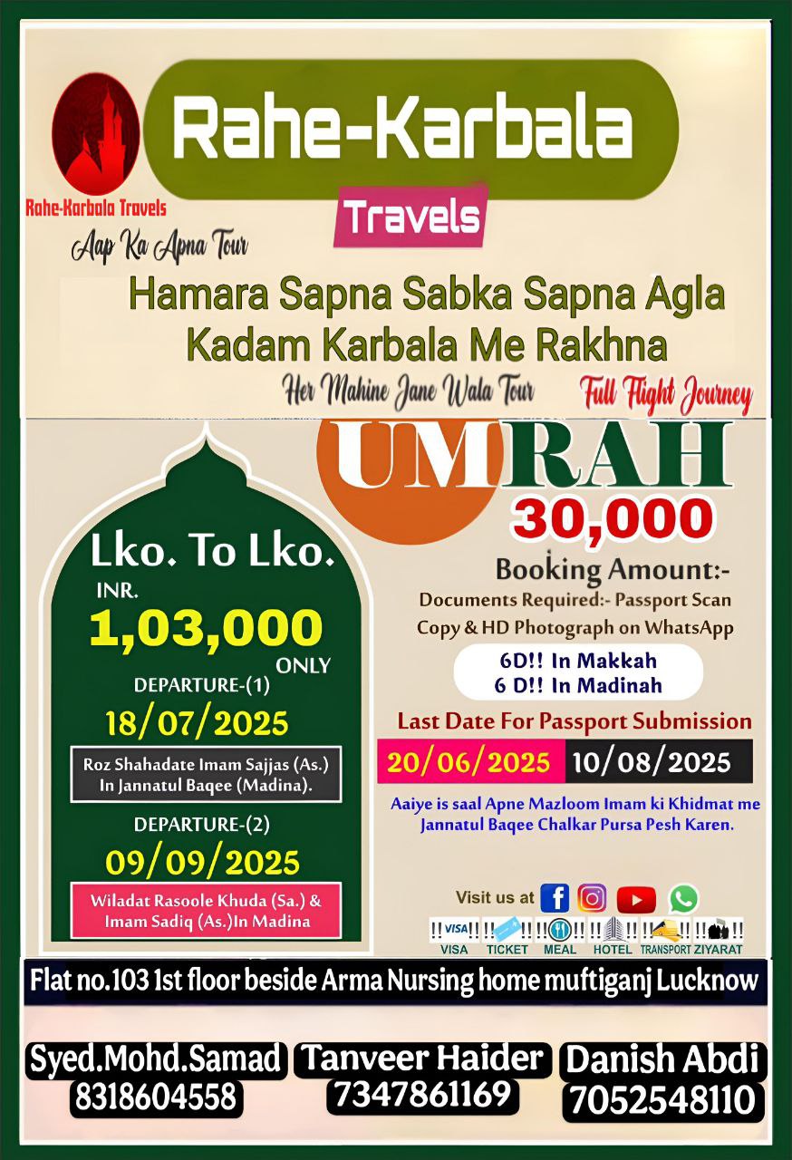 Our vision is to provide every muslim sacred journey to the MECCA ,MADINA & KARBALA because everyone is not financially capable to perform UMRAH and go to KARBALA, But we will provide solution like EMI options and affilate programs.