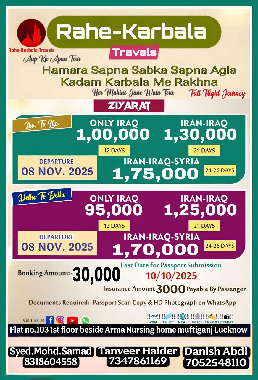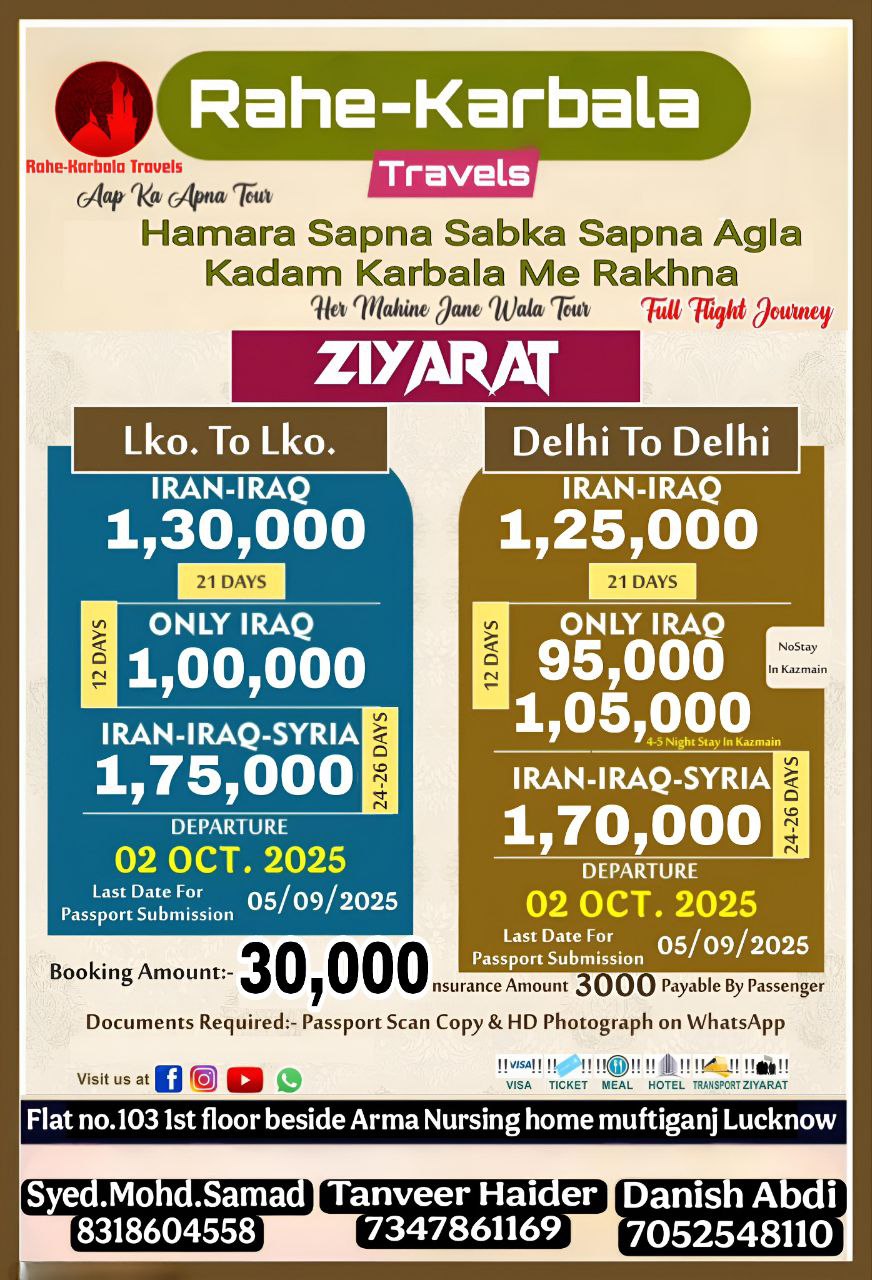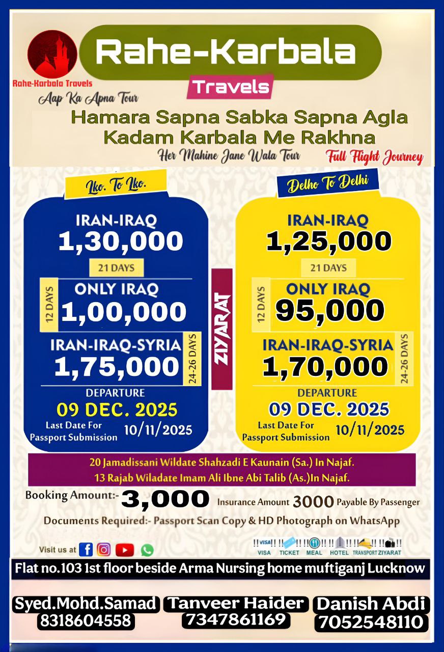 Our vision is to provide every muslim sacred journey to the MECCA ,MADINA & KARBALA because everyone is not financially capable to perform UMRAH and go to KARBALA, But we will provide solution like EMI options and affilate programs.